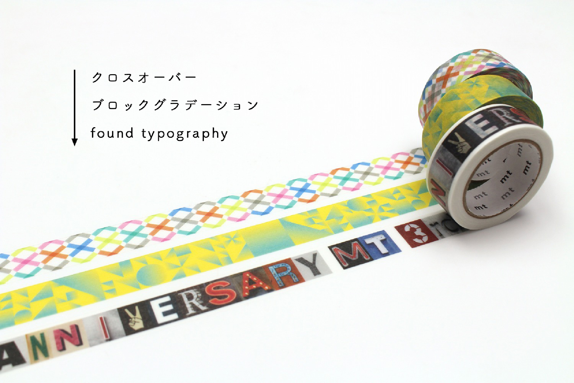 mt lab.の3周年記念限定テープセットです! ・クロスオーバー ・ブロックグラデーション ・found typography