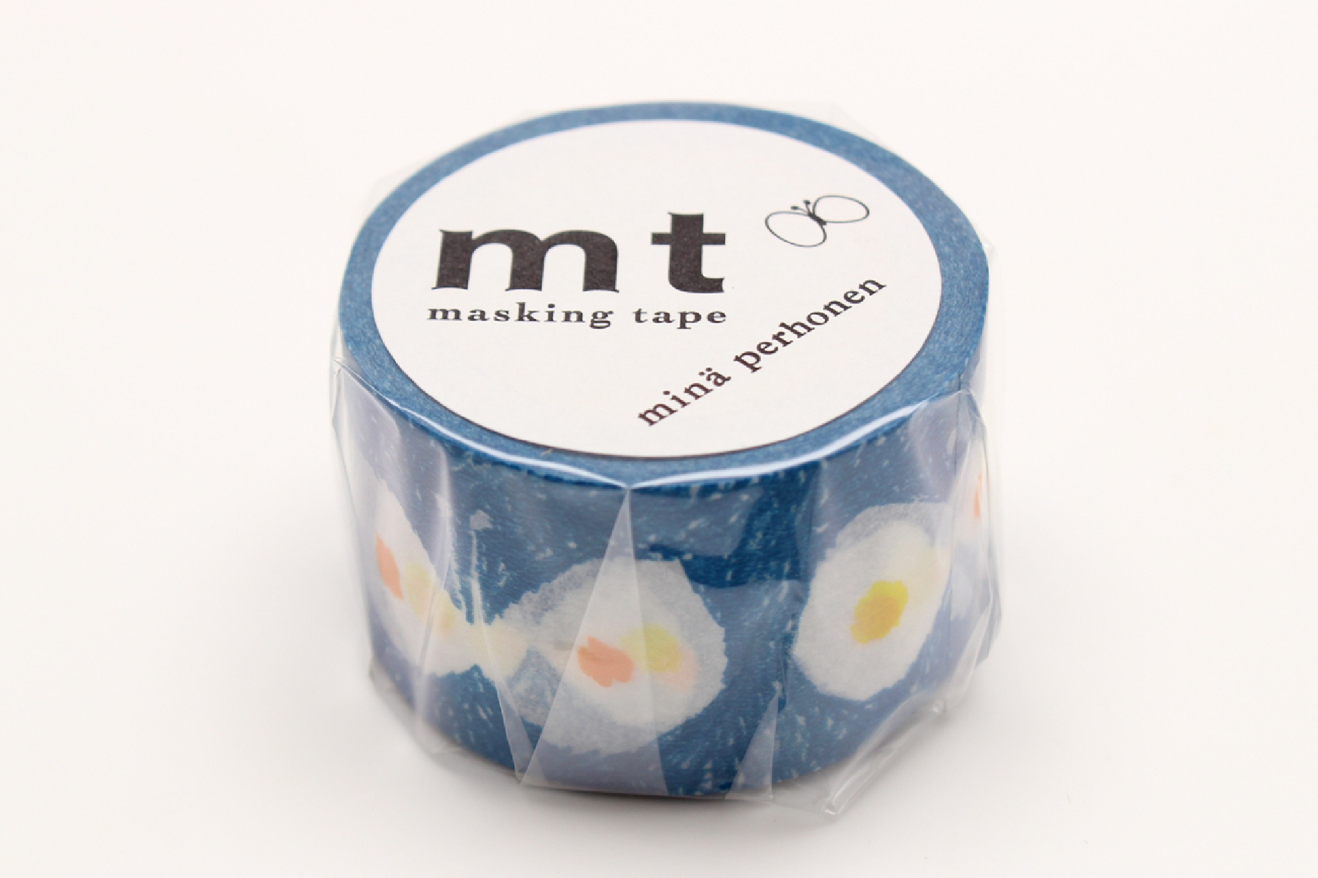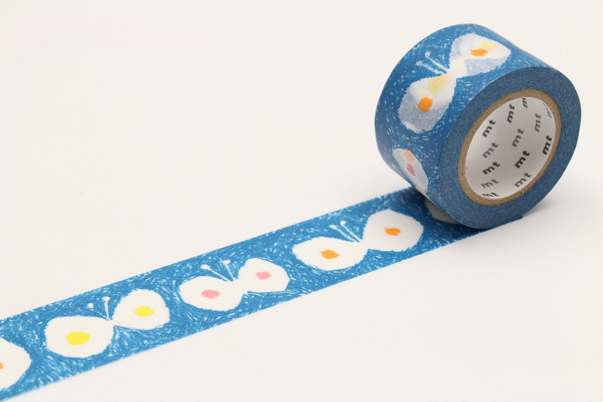 ブルーベースのテープに、ミナ・ペルホネンが描く色んな羽を持つ蝶達が飛んでいます。